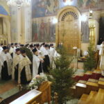 Затем от лица всего духовенства протоиерей Борис Весновский поздравил владыку Назария с Рождеством Христовым. В дар Преосвященному владыке преподнесли евхаристические сосуды, а также цветы.