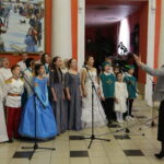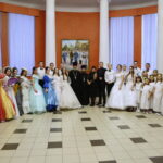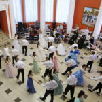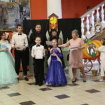 Но главными героями вечера стали студенты нашего города. Юноши и девушки под руководством педагога Натальи Кондратьевой разучили и исполнили самый величественный танец — полонез. Многие из них впервые прикоснулись к искусству танца, однако все выглядели очень достойно. Грациозность, красота нарядов, элегантность дам и галантность кавалеров, сделали этот бал праздником женственности и мужественности! Радостно, что в нашем городе есть такая молодежь, которая с удовольствием приобщается к классической бальной культуре и музыке. Замечательные ведущие бала Клещевникова Наталья и Смирнов Алексей украшали вечер танцевальными и интеллектуальными играми. А духовные наставления участникам бала прозвучали из уст секретаря Кузнецкой епархии протоиерея Бориса Весновского, зачитавшего слово Патриарха Кирилла на праздник Сретения Господня и руководителя молодежного отдела епархии протоиерея Андрея Спиридонова, который подвел итоги мероприятия. Все участники получили сладкие подарки, а студенты — дипломы участников бала. Благодарим всех, кто помог провести сегодняшний праздник – руководство музея, ККЭТ и всех, кто принял участие в подготовке и проведении бала!