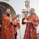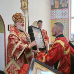 В завершение праздника Владыка Назарий поздравил прихожан, поблагодарил ктитора храма Валерия Васильевича Кемешева за труды по строительству и благоустройству храма, и подарил приходу икону святых Бориса и Глеба.