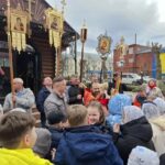Затем дети и их родители приняли участие в крестном ходе вокруг храма с пасхальными песнопениями и окроплением святой водой.